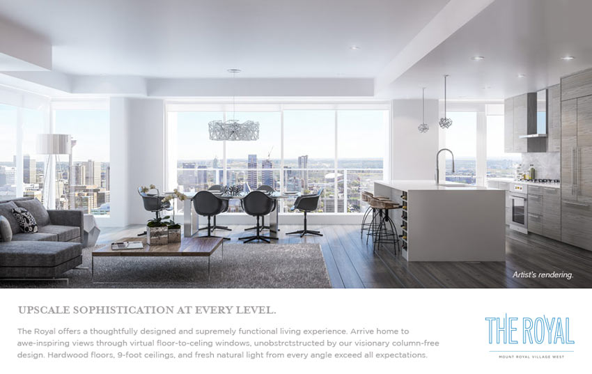 A new mixed-use condo and commercial development has been announced for Calgary, A.B. The Royal, a 223-unit project with 90,000 square feet of retail and office space, will be developed by Embassy BOSA and First Capital Realty Inc. Construction is scheduled to start in February 2015 with completion in about two years.